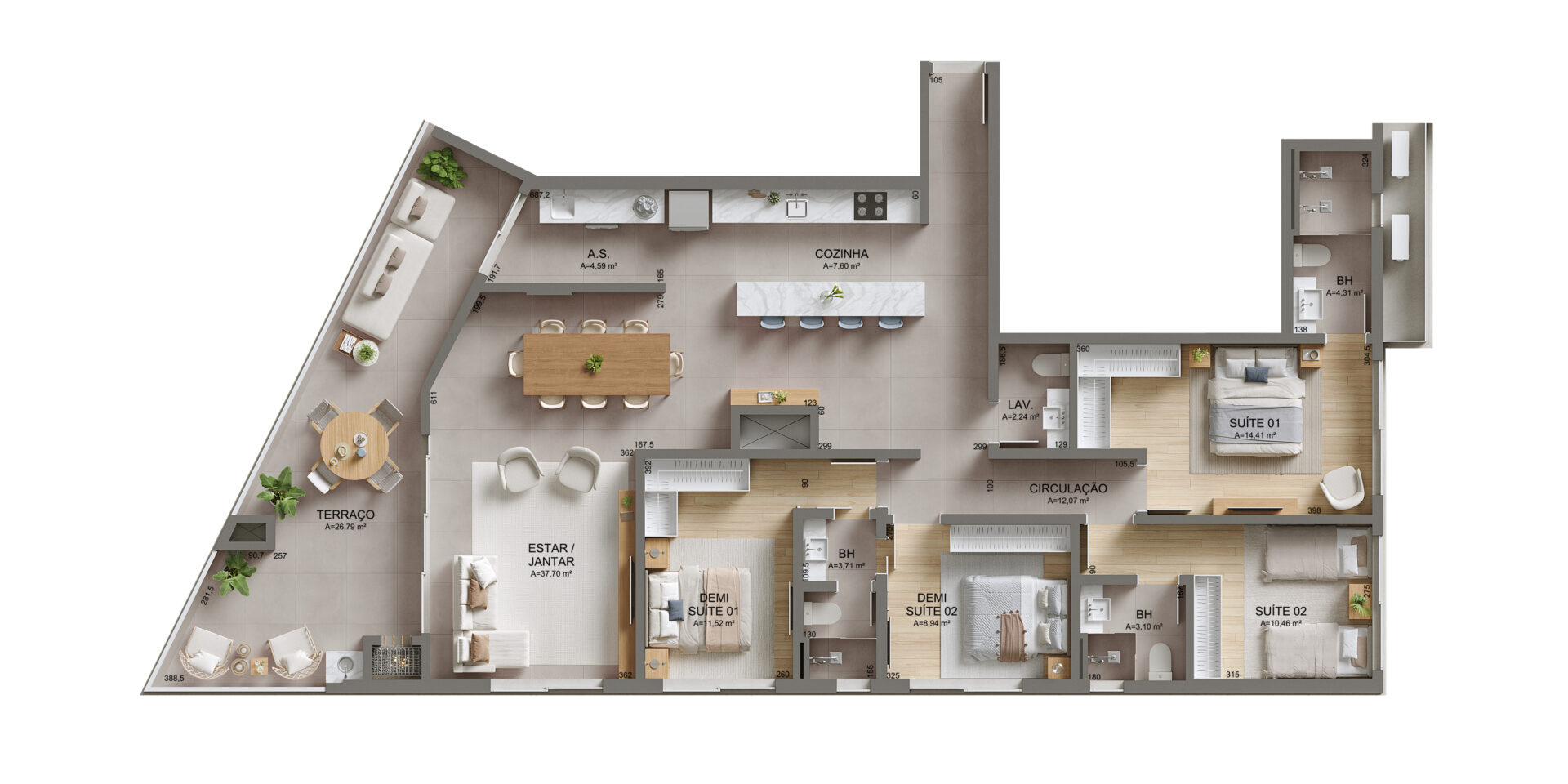 | 605 | DISPONÍVEL | R$ 2.057.000,00 | 114,87 m² | 3 suítes | Visualizar planta | Torre A | Pvto Tipo | Baixo | L3C1 |